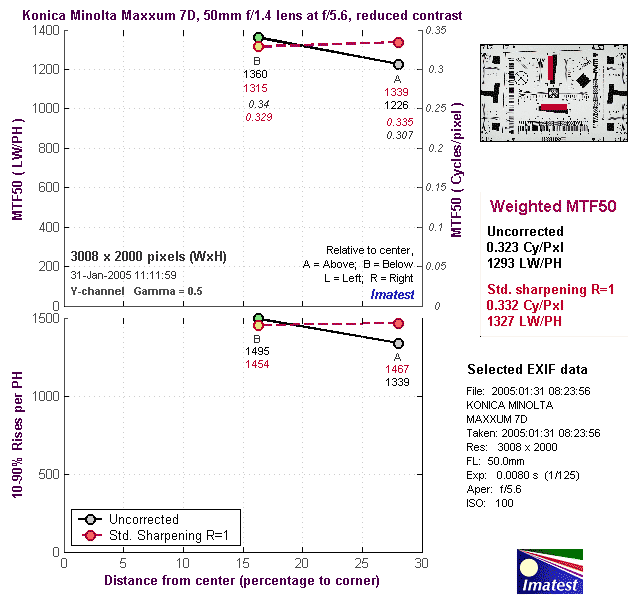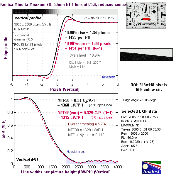 Here's some of the results produced by Imatest for the Konica Minolta Maxxum