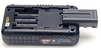 At least in terms of battery type and voltage, the C-2000 can handle just about any battery you're likely to throw at it. About all it can't manage is low- or high-voltage packs outside its 4.8 to 12 volt range. It handles both NiCd and NiMH cells, as well as LiIon rechargeables as used by many camcorders. (And when charging the LiIon cells, it's a good bit faster than most manufacturer-supplied chargers, with a charging current of 780 mA.) Here's a list of the types of batteries you can charge with the C-2000: