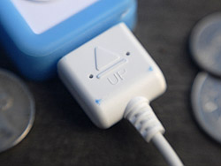 It takes about four hours to charge the built-in 230 mAh lithium-ion battery the first time you use it. The manual warns you about that, to its credit. Subsequent charges are much quicker, though, at just two hours. To charge it, just connect the USB cable to your computer. But be sure the arrow on the USB connector and the i-gotU itself are both facing up when you connect them.