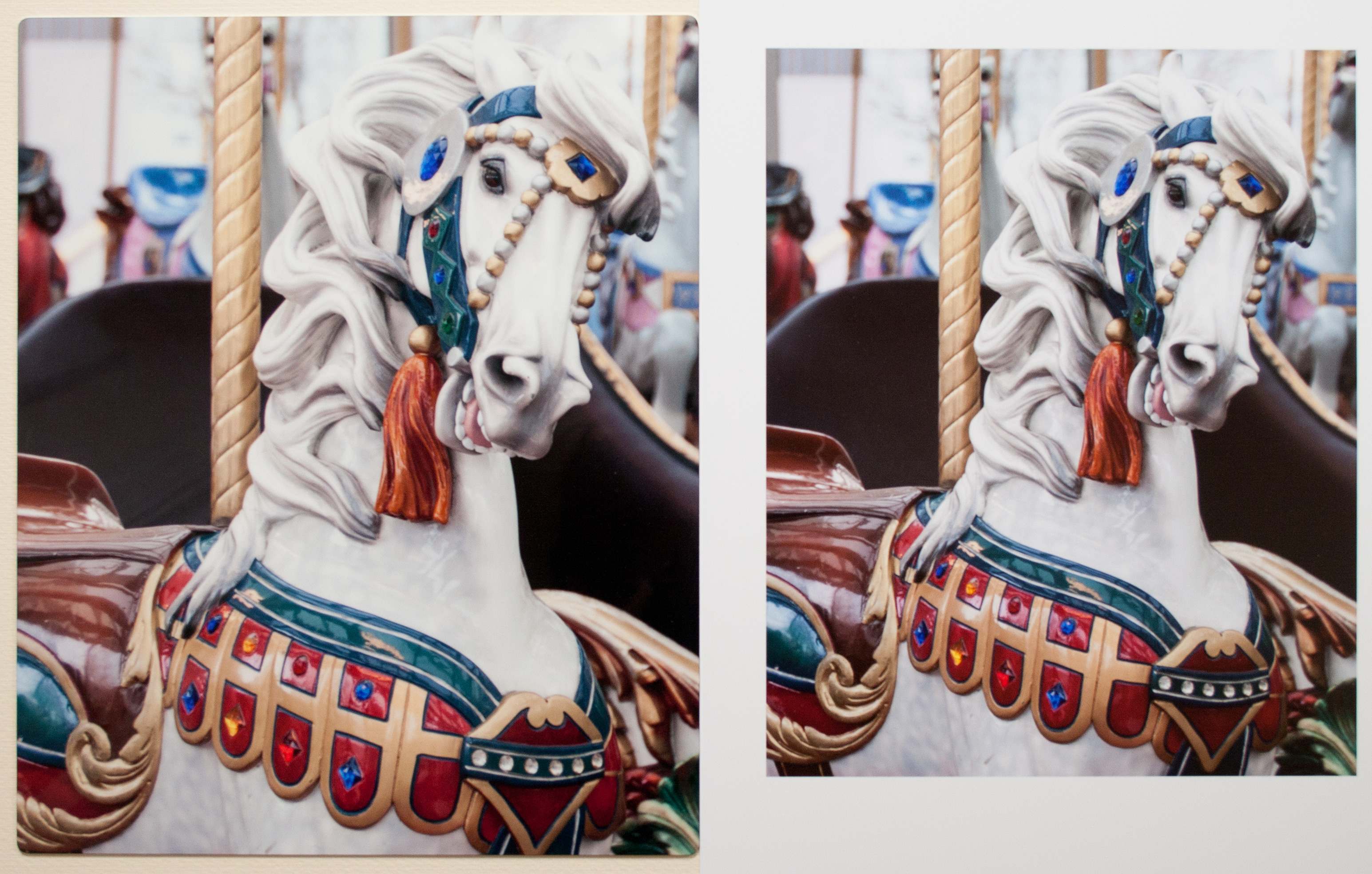 To find out, we emailed an image of a carousel horse to Chromaluxe in Louisville, Kentucky to be printed on an 8x10 panel with a high gloss finish on white.