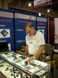 LensPen. We had to laugh when we caught Murray Keating cleaning the display case at the LensPen booth with, ahem, a cotton rag. Murray, where's the LensPen cleaning cloth for display cases? The company, famous for its patented dry carbon compound tipped lens cleaning pens, has a cleaning solution for everything from cell phones to laptop screens. But not, apparently, display cases (yet).