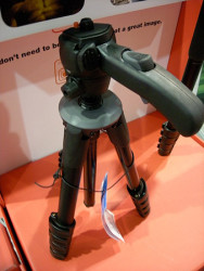 Manfrotto modo tripod. Tripods must be on our minds these days because we found ourselves taken by Manfrotto's Modo. It has an unusual pistol grip with buttons to lock position, quite a different approach from the screw handles on most tripods.