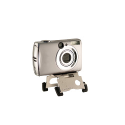 Plus, you can accessorize it with the $24.95 Millipod Micro Tripod folding metal tripod. That too can stay on your digicam and you probably won't even notice because it's only 5mm thick. The front leg is adjustable so you can change the angle of your shot.