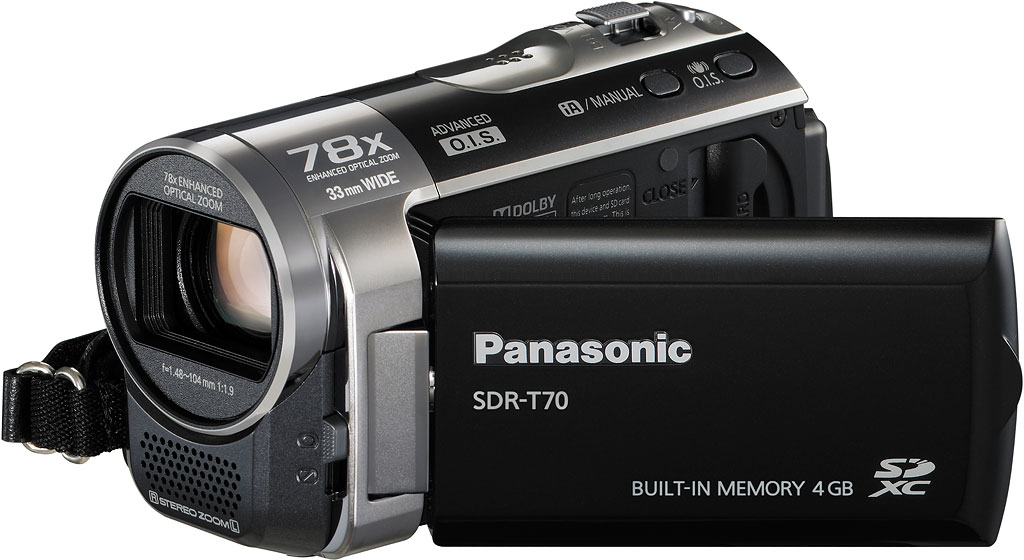 LAS VEGAS, NV (January 5, 2011) – Panasonic today announced its 2011 line-up of standard definition camcorders, the SDR-H100, the SDR-T70 and the SDR-S70 – all compact models with advanced features like a 33mm wide-angle*1 and a powerful Enhanced Optical Zoom of 78x. With the long and powerful zoom, Panasonic also features an Advanced OIS (Optical Image Stabilization) feature, plus Active mode – to help reduce blur when zooming, even if the user is walking.