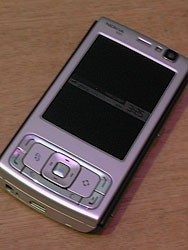 We'd spent some time chatting with Nokia's Mikko Pilkama about the companies two new phones, one optimized for stills with a 5-megapixel sensor and the other optimized for video with the largest lens we've seen on a camphone. Later we took a look at the company's Web browser. Famous for making things easy to use, Nokia had a nice interface on the N800. We saw it navigate a Web page much like you navigate a large image in Photoshop, moving a rectangle around with the arrow keys.
