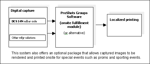 In-studio Kodak ProShots Groups Software is provided via a lab fulfillment module. The camera, bar code-reading hardware and ProShots-branded software link each file to its subject, and also link the studio to the lab.