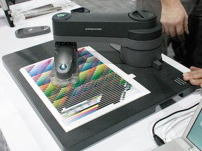 At the X-Rite table (http://www.xrite.com) we saw the new and under $2,000 i1-iO scanning table. With an X-Rite i1PRO spectrophotometer attached, it automatically reads test charts as thick as 10mm (from "thin polybag material to ceramics and textiles," we were told). And it does it faster -- and more accurately -- than a human can, too.