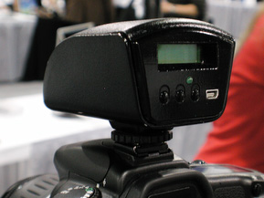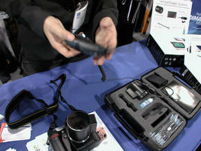 Secu-line's Soon-Gi Jang demonstrated the Zigview on a Canon. The lith-ion battery has a run time of about two hours, he said. The LCD can be detached from the mount and actually fire the camera via a cable connection. You can also plug in a video cable to focus on a TV screen.