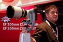 Canon's booth at PMA is located on the right just inside the hall entrance, and ranks as the largest of any company at the show this year. In the runup to PMA, Canon announced five new digital cameras - among them the EOS Rebel XSi digital SLR and four PowerShots - the SD1100 IS Digital ELPH, A590 IS, A580 and A470. The company also launched two new image-stabilized L lenses, the EF200mm f/2L IS USM and EF800mm f/5.6L IS USM. There were also two new printers - the PIXMA MX850 Office All-In-One and PIXMA iP2600 Photo Printer - as well as no less than twelve camcorders (three of them high-definition models, the remainder being standard definition) which were first shown at the CES show a couple of weeks back, and offer a selection of recording media including SDHC cards, internal flash drives of varying capacities, and internal DVD burners, depending on the model. For the models without the ability to write to DVD discs, a separate DW-100 DVD Burner provides a solution when you want a DVD copy to share with friends or family.