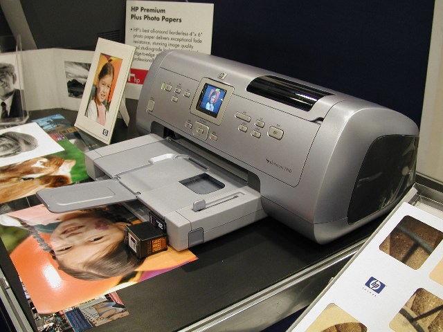 The $300 HP Photosmart 7960 with built-in card reader (under the top cover), LCD and 8 inks (3 grays).
