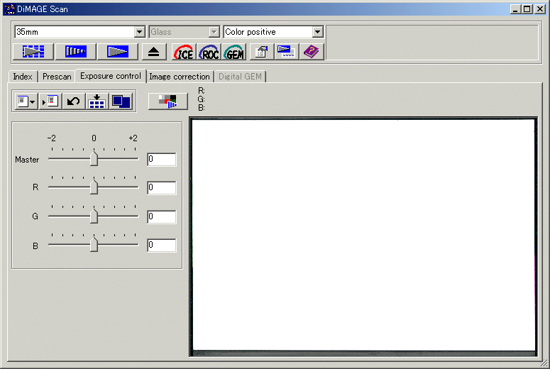 * DiMAGE Scan Elite II does not support IEEE1394 "FireWire" for OS X. (USB can be used for OS X) - Exposure adjustment function - Manual exposure enables users to adjust the exposure by R, G, B channel. Its compensation value can then be saved and recalled for later use.