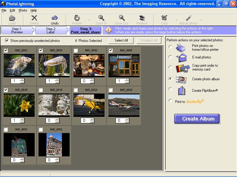 - Create FlipAlbum: If you own E-Book Systems Inc.'s photo album software, PhotoLightning can automatically create an album from your selection of photos.
