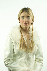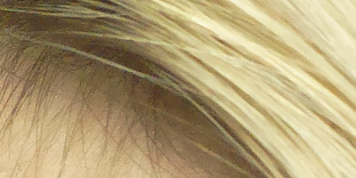 In this shot, we can see two things - The great resolving power of the 14n's sensor, as seen in the individual strands of hair, as well as the effect of the noise-reduction processing, in the relatively flat-toned areas of the model's hair. This is a common approach to noise reduction in digicams, basically "flattening" the image detail in areas of low subject contrast. (Where noise would be most apparent.) The technique does indeed do a good job of making the image noise less apparent, but as you can see here, it can also mask subtle subject detail as well. (By the way, both this crop and the one below were extracted from the TIFF file that Kodak posted, not a JPEG. - So any flattening of the image detail is the result of noise-reduction processing, not JPEG compression artifacts.) |