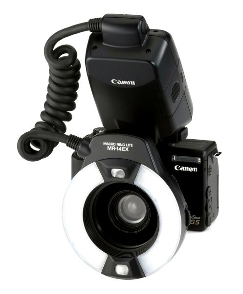 | Terminals for external flash | | Sync-terminals at accessory shoe | | Use of following external flashes is recommended: | | Canon Speedlite 220EX, 380EX, 420EX, 550EX, Macro Ring Lite MR-14EX and Macro Twin Lite MT-24EX | |