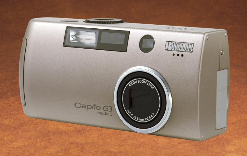 New: RICOH Caplio G3 model S: Ricoh is introducing a zoom digital camera with 3.24 megapixels, magnesium injection mould housing and the world's fastest shutter release reaction Ricoh announces the introduction on the market of a new digital camera, the Caplio G3 model S - in short G3 S. Sales in Europe begin in July. The magnesium alloy housing for the Caplio G3 S which is an innovative, robust and light material has been created by an injection mould system. A striking feature is the extremely short shutter response time of 0.14 seconds with which the Caplio G3 S surpasses even traditional miniature cameras thus placing it in the top position in this camera category*. * As from 1 February 2003 for all auto-focus digital cameras. Shutter response time is measured as the delay from the time the shutter release button is fully depressed until exposure starts in auto-focus function without using focus lock.