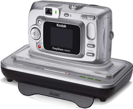 Kodak EasyShare software and docks EasyShare CX6230 camera owners can quickly transfer their digital pictures to a connected computer with just one touch using the optional Kodak EasyShare camera dock 6000 (US$79.95 MSRP). It also rapidly charges compatible camera batteries in less than three hours. People can also receive all the benefits of a dock, plus water-resistant Kodak 4 x 6-inch pictures in as little as 90 seconds, when using the Kodak EasyShare printer dock 6000 (US$199.95 MSRP). Both docks are compatible with all CX/DX6000 and LS600-series Kodak EasyShare digital cameras, and are available immediately.