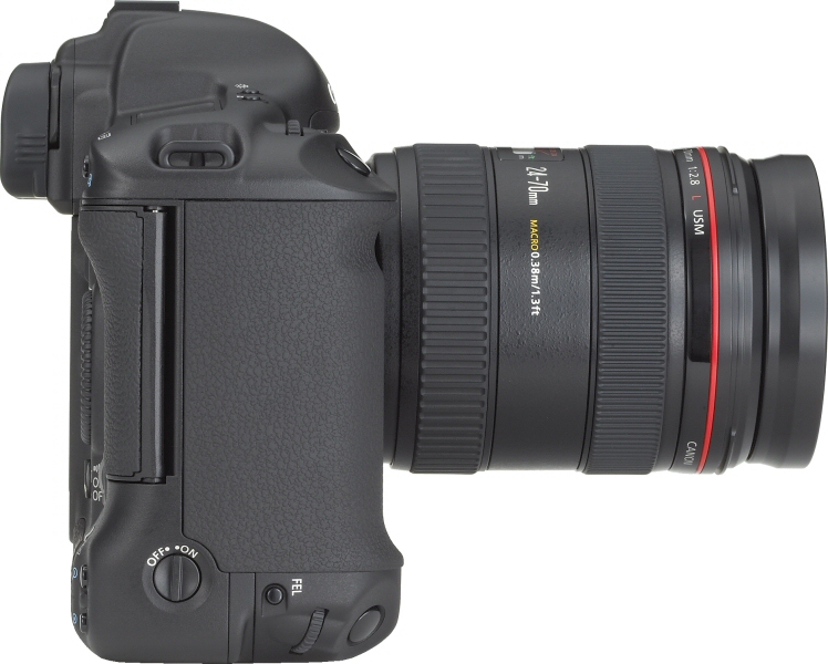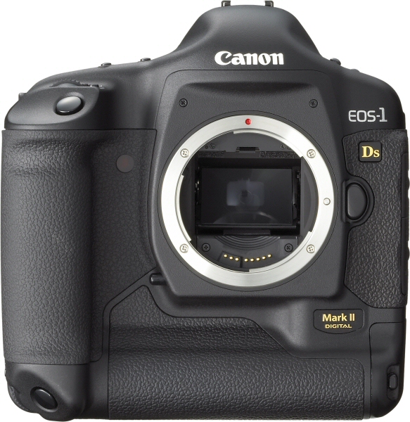 The Canon EOS-1Ds Mark II features a long list of updates as compared to the original EOS-1Ds, many of them incorporating features first seen in the EOS-1D Mark II. As with the original 1Ds, the 1Ds Mark II uses a full-frame (36 x 24mm) image sensor, meaning that where most digital SLRs have a focal length crop / multiplier, this camera won't - lenses will have the exact same focal length as when used on a 35mm film camera. This can be extremely important, depending on your useage - particularly when wide angle photography is necessary. Where the original 1Ds had a CMOS imager with an effective resolution of 11.1 megapixels (8.8 µm pixel size), the 1Ds Mark II 's CMOS sensor will boost this to a class-leading 16.7 effective megapixels (7.2 µm pixel size) - the highest of any currently announced 35mm digital SLR. The sensor incorporates changes first seen on the 1D Mark II - a Canon-developed on-chip RGB primary color filter, larger microlenses that have smaller gaps between them, and a reduction in the number of transistors per pixel (increasing light-sensitive pixel area). The sensor reads eight channels out per line simulatneously, and includes Canon's second-generation, on-chip noise elimination circuit which corrects fixed-pattern and random noise. Impressively (despite the smaller pixel size), the ISO range has been expanded from 50 - 1250 on the older model to 50 - 3200 on the new model (including the expanded settings on both models). This gives the 1Ds Mark II the same ISO range as the 1D Mark II, which again has a larger pixel size of 8.2 µm - yet Canon is predicting "the same low noise" as that model. Where the 1Ds offered just two choices for image size, the 1Ds Mark II will offer four resolutions in JPEG mode - L (16.60MP), M1 (8.60MP), M2 (6.30MP), and S (4.20MP); RAW mode allows only the highest 16.60MP resolution. JPEG files offer a choice of 10 compression levels, and RAW files are now recorded in Canon's .CR2 RAW format, seen previously on the 1D Mark II. Recording quality levels and combinations (JPEG, RAW and RAW + JPEG) can now be accessed directly with the Quality button and the Quick Control Dial. As previously noted, the 1Ds Mark II shares a number of features with the 1D Mark II - among them the same 21-zone metering sensor, 45-point (7 cross-type sensors) autofocus system (although the AI Servo AF algorithm has been optimized for 4 fps operation), E-TTL II flash system, control layout, improved dust- and weather-proofed magnesium alloy chassis, shutter mechanism (rated to 200,000 cycles - 50,000 more than the 1Ds), and storage (CompactFlash Type-I and Type-II including Microdrive, plus Secure Digital - with the ability to use the cards sequentially, or to both cards simultaneously for backup purposes). Speed of the 1Ds Mark II looks to be very satisfactory. Where the 1D Mark II starts up in 0.5 seconds (and the 1Ds in 0.6 seconds), the 1Ds Mark II will be ready to shoot in a speedy 0.3 seconds, all according to Canon's specifications (our own measured times for the 1Ds were somewhat slower). Shutter lag is said to be the same as the 1Ds (55ms, according to Canon - we measured it at 83ms), but as with the 1D Mark II can be reduced to 40ms with maximum aperture set via a Personal Function. Viewfinder blackout is rated at 87ms - the same speeds as the 1D Mark II. Continuous shooting should be four frames per second, for up to 11 RAW frames, or 32 JPEG frames - a whopping increase from the three frames-per-second for 10 frames of the original 1Ds, particularly when you consider the significantly higher resolution. Flash card write speeds are said to be significantly improved (from under 2MB/second in the 1DS to as much as 5.8MB/second on the Mark II, with suitable flash cards), as are FireWire transfer speeds (although we don't have a specific spec for this from Canon). Battery life is also said to be improved, although again no specific detail on the improvement is yet available. A new three-layer optical low-pass filter is said to reduce aliasing artifacts (color moire), in combination with the DIGIC II processor. Overall color reproduction is also said to be improved, while retaining fine color gradations. The histogram function now shows not only the more traditional brightness distribution, but allows the R, G, and B channels to be seen separately - letting you confirm exposure (and clipping) in the individual color channels. The LCD display first seen in the EOS-1D Mark II is used in the 1Ds Mark II, offering almost double the resolution of its predecessor. It also uses a white LED backlight, instead of the 1Ds' fluorescent backlight that used more power, was dimmer, and made judging color more difficult. The pre-set color matrixes - five, in all - have been re-tuned to "control red saturation", according to Canon; as with the 1D Mark II you also have a choice of two user-set matrixes with a choice of Adobe RGB or sRGB, plus 5-step control over saturation and color tone. There are six levels of sharpening available, and three user tone-curves can be uploaded using the supplied software. White balance algorithm improvements first seen in the 1D Mark II have allowed the original 1Ds' external white balance sensor to be removed, meaning that white balance detection is done entirely with the imager - not using a hybrid system. User-set color temperatures now extend as low as 2000K, rather than 2800K on the older 1Ds. As with the 1D Mark II, white balance bracketing now allows three bracketed frames to be captured in a single shot, and the white balance compensation function now offers magenta / green bias as well as the 1Ds' blue / amber bias. Manually adjusted white balance can now be set using the WB button in combination with the Main dial, removing the need to visit the menu system. ISO speed extensions have been moved to the menu screen from the Custom Functions, again likely saving a little time to adjust. Almost all the camera settings displayed on the to