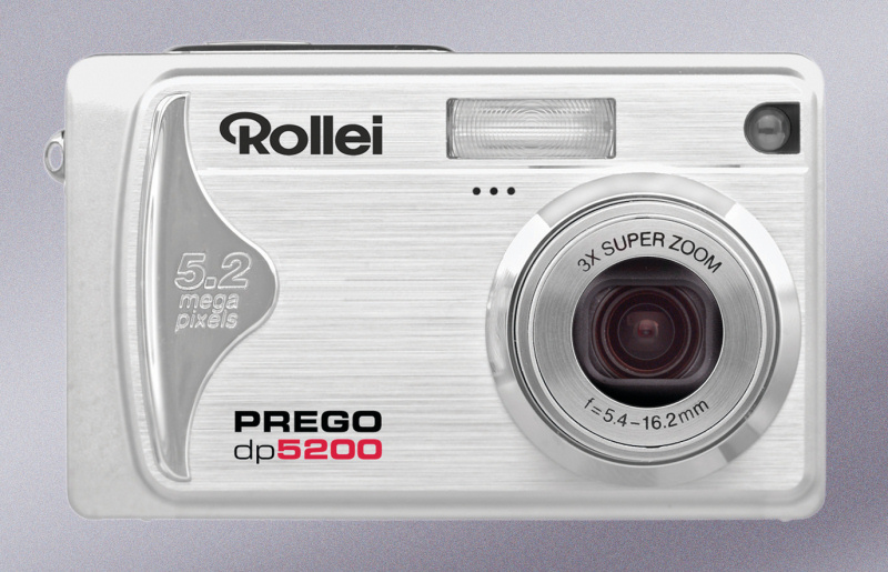 Versatile new compact Rollei Prego dp5200 digital camera with 5.2 megapixels offers large and easy-to-read 2.5-inch TFT color display The powerful new Rollei dp5200 compact camera nicely fits into the "middle class" of digital cameras: It is an attractive combination of stylish, practical design and extremely high operator comfort as well as sophisticated shooting functions. Its extra-flat, stylish metal body houses a 3x zoom lens supported by a 4x digital zoom. Additional functions include video and voice recording. The Prego dp5200 is a very user-friendly camera. With dimensions of 88.5 mm x 54.5 mm x 24 mm and a weight of only 130g, it is compact and light, however, the 2.5-inch TFT color display gives a perfect view of subjects and settings. The Prego dp5200 comes with a 5.2-megapixel CCD for making large prints. Its 3x HFT f/2.8-4.8 zoom lens covers focal lengths from 5.4-16.2 mm, equivalent to 32-96 mm in 35mm photography. Automatic focusing is possible from 0.5 m to infinity, macro focusing from 6 cm to 50 cm. Auto focusing is performed through the lens (TTL). In addition, the Prego dp5200 permits both average and spot metering. Available shutter speeds are from 1/2 s to 1/1000 s. Flash, white balance and exposure compensation can be controlled either automatically or manually. Manual exposure compensation is possible in 1/3 increments over +/- 2.0 EV. White-balance presets include daylight, cloudy, tungsten and fluorescent. Flash also offers various modes, including night portraits and red-eye reduction. Depending on the intended use of the photos and the capacity of the storage medium used, the photographer may choose between Fine, Standard and Economy image quality, which are stored on SD memory cards. A built-in microphone and loudspeaker allow the Prego dp5200 to be used not only as a versatile still camera, but also as a mini video camera or even dictation machine. Voice recordings of up to 30 seconds are just as easy as the recording of video clips complete with sound. Video clips may be recorded with either 640 x 480 pixels or 320 x 240 pixels in MPEG1 (AVI) format. It also as a built-in self-timer with a 2 or 10-second delay. |