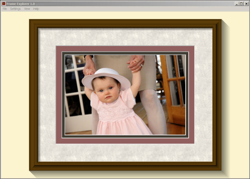 With Frame Explorer, you display the actual image you want to frame. Then select mat and frame sizes, colors, and textures and view them realistically against the actual background color where you will hang the frame. You can even approximate display lighting conditions. You can choose single, double, or triple matting, square or beveled edges, and rectangular or oval openings as well as different frame widths and profiles. You can quickly and easily explore myriads of options to develop the most effective framing design for your image. When you are happy with your choices you can print the overall design for reference. Frame Explorer also prepares a table listing all the materials and their dimensions.