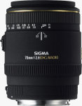 The Sigma MACRO 70mm F2.8 EX DG lens has ten elements in nine groups, and a nine bladed diaphragm, with an angle of view fixed at 34.3°. It focuses down to 25.7 centimeters, accepts 62mm threaded filters, and weighs 525 grams. More details can be found in the specifications sheet and press release below, both courtesy of Sigma.
