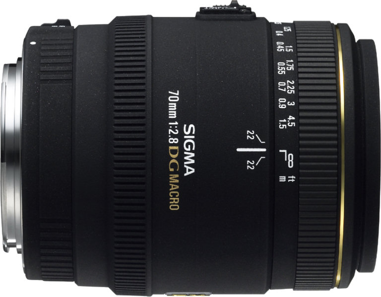 | Sigma MACRO 70mm F2.8 EX DG |  | | Focal Length | 70mm | | Minimum Aperture | F22 | | Lens Construction | 10 Elements in 9 Groups | | Angle of View | 34.3° | | Number of Diaphragm Blades | 9pcs | | Minimum Focusing Distance | 25.7cm (10.1") | | Maximum Magnification | 1:1 | | Filter Size | 62mm | | Lens Hood | Screw-in Type | | Dimensions | Diameter 76mm (3.0in") x Length 95mm (3.7") | | Weight | 525g / 18.5oz | | Compatibility | SIGMA AF, NIKON AF, CANON AF, SONY AF, PENTAX AF | | |