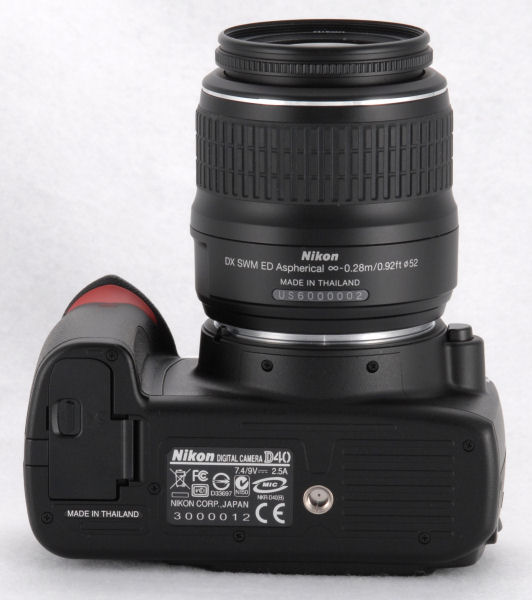 The Nikon D40 retains the six megapixel image sensor used in the D50, housed in a body that sets an impressive benchmark among its Nikon DSLR siblings in terms of miniaturization. Body size and weight is similar to Canon's EOS Digital Rebel XTi or Pentax's K100D, despite the fact that many features in the higher-res (and higher-priced) D80 model have made their way into the D40. A couple of changes are unique to the D40, however. Most significantly, the Nikon D40 doesn't include a focus motor in the camera body, saving some cost / weight / size while dropping compatibility for some older lenses. Instead the D40 relies on the fact that recent Nikkor lenses have tended to integrate a motor already. Photographers with a large stock of Nikon glass are unlikely to be considering an entry-level camera anyway, and new SLR users will be unlikely to notice the subtraction of some backwards compatibility. The D40's AF system spec is also reduced somewhat as compared to the camera's top-shelf siblings, with just three AF points (as compared to in the D50, and 11 in the D80). Other features of the Nikon D40 include a 2.5" LCD display with 230,000 pixels, a new help system accessible via a dedicated "i" button on the camera body, Nikon's iTTL flash metering, and 2.5 frames-per-second burst shooting capability. The D40 also offers RAW / JPEG / RAW+JPEG file formats, shutter speeds from 30 to 1/4000 second, flash sync at 1/500 second, ISO sensitivity from 200 - 1600 with a 3200 boost, and metering courtesy of a 420-segment matrix sensor. The Nikon D40 will ship from December, priced at $599 with an 18-55mm f/3.5-5.6 kit lens. (Nikon tells us that the camera will only be offered as a kit, the body and lens will not be available separately.) Nikon D40 |  | General | Camera Type | SLR | Manufacturer | Nikon | Model Number | D40 | Dimensions | 5.0 x 3.7 x 2.5" 126.0 x 94.0 x 64.0mm | Weight | 475.0 g 16.6 oz | Planned Price | $499.95 | Planned Availability | Dec 2006 | Image Capture | Sensor Type | Nikon DX CCD 6.24 megapixels (total) 6.10 megapixels (effective) | Focal Length Multiplier | 1.50 | Aspect Ratio | 3:2 | Image Dimensions | 3008 x 2000 (6.0 megapixels) 2256 x 1496 (3.4 megapixels) 1504 x 1000 (1.5 megapixels)