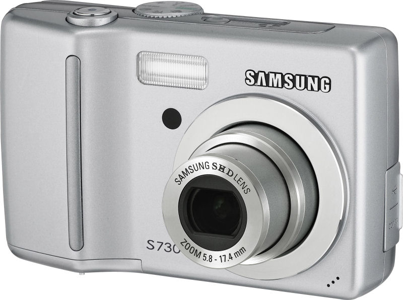 The S630 offers a sensor resolution of six megapixels, and the S730 boosts this to seven megapixels. Preliminary specifications suggest that the S730, despite its higher resolution from the same sensor size, may offer a higher maximum ISO sensitivity of ISO 1000- versus ISO 800 on the S630 - but this spec is marked as "to be determined" and hence may change before release. Both the Samsung S630 and S730 have understated, attractive compact body with softly curved side edges, and mostly smooth panels , save for a slight protrusion around the lens, and a gently angled handgrip on the right hand end (as seen from the rear). The lens is a Samsung SHD-branded 3x optical zoom with a fairly standard 35 - 105mm equivalent zoom range, and a maximum aperture of f/2.8 at wide angle, or a not so bright f/4.9 at telephoto. A 2.5" LCD display with a higher-than-average resolution of 230,000 pixels takes up a fair amount of real estate on the back of the camera, and serves as the only method of framing images. The Samsung S730 and S630 include the company's "Advanced Shake Reduction" function which attempts to combat camera shake in software - not to be mistaken for a true mechanical image stabilizer. They also offer nine scene modes should help make the camera approachable for beginners. Images are stored on SD / MMC cards, or in 20MB of built in memory, and power comes from two standard AA batteries - either alkaline disposables (bundled) or NiMH rechargeables. The Samsung S630 ships this Spring priced at $179.99, alongside the launch of the S730 at a price of $199.99. | Samsung S630 |  | | General | | Camera Type | Compact | | Manufacturer | Samsung | | Model Number | S630 | | Dimensions | 3.9 x 2.4 x 1.0" 99.8 x 62.0 x 25.0mm | | Planned Price | $179.99 | | Planned Availability | 2007 | | Image Capture | | Sensor Type | 1/2.5" CCD 6.00 megapixels (effective) | | Aspect Ratio | 4:3, Other | | Image Dimensions | TBD x TBD 3072 x 1728 (5.3 megapixels) 2592 x 1944 (5.0 megapixels) 2048 x 1536 (3.1 megapixels) 1024 x 768 (0.8 megapixels) 2.6 megapixels 2.1 megapixels | | Image Quality | 3 levels | | Image Preview / Review | | Viewfinder | No | | LCD | 2.5", 230,000 pixels | | Playback Zoom | 12.0x max | | Lens | | Lens Type | Samsung SHD Lens 3x optical zoom | | Image Stabilization | No | | Focal Length | 5.8 - 17.4mm (actual) 35 - 105mm (35mm equivalent) | | Aperture Range | Wide: f/2.8 ~ f/7.1, Tele: f/4.9~f/12.4 | | Focusing System | Contrast Detect | | Focusing Range | Normal: 33" - infinity (80 cm - infinity) Macro: 2.0" - 33" (5 cm - 80 cm) | | Exposure | | ISO Sensitivity | Auto, 80, 100, 200, 400, 800 | | Shutter Speed | 8 - 1/1500 second | | Exposure Modes | Program | | Metering Modes | Multi, Spot | | Exposure Compensation | +/- 2.0EV in 1/2EV increments | | White Balance | Image Sensor - Auto, Daylight, Cloudy, Fluorescent_H, Fluorescent_L, Tungsten, Custom, Manual | | Internal Flash | Modes: Auto, Auto & Red-eye reduction, Fill-in flash, Slow sync, Flash off Range: Wide : 0.3m ~ 3.0m, Tele : 0.4m ~ 2.5m (ISO AUTO) | | Creative | | Scene Modes | Night, Portrait,(in Mode Dial), Landscape, Close-up, Sunset, Dawn, Backlight, Fireworks, Beach & Snow | | Digital Zoom | 1.0x - 5.0x | | Self Timer | Yes, 2/10/2+10 seconds | | Time Lapse | No | | Movie Format | AVI (Motion JPEG) with audio 640x480 and 320x240 Max. frame-rate: 30 frames per second | | Storage | | Recording Medium | SD/MMC, Built-in, SDHC | | File System | Complies with Design Rule for Camera File System (DCF) | | File Format | JPEG (EXIF 2.2) | | Connectivity | | Video | Yes, NTSC / PAL switchable | | Computer | USB 2.0 Full (LOW) Speed | | Other | DC input | | Power | | Battery Type | Alkaline disposable, NiMH rechargeable | | Battery Form Factor | 2 x AA | | Product Bundle | | Software | Digimax Master, drivers | | Battery / Charger | 2 x AA alkaline disposable battery | | Flash Memory | 20.0MB Internal | | Other | | Digital Print Order Format (DPOF) compliant | Yes | | PictBridge Compliant | Yes | | Internal Microphone | Yes | | Internal Speaker | Yes | | More Photos |  | | | | Samsung S730 |  | | General | | Camera Type | Compact | | Manufacturer | Samsung | | Model Number | S730 | | Dimensions | 3.9 x 2.4 x 1.0" 99.8 x 62.0 x 25.0mm | | Planned Price | $199.99 | | Planned Availability | 2007 | | Image Capture | | Sensor Type | 1/2.5" CCD 7.40 megapixels (total) 7.20 megapixels (effective) | | Aspect Ratio | 4:3, Other | | Image Dimensions | 3072 x 2304 (7.1 megapixels) 3072 x 2048 (6.3 megapixels) 3072 x 1728 (5.3 megapixels) 2592 x 1944 (5.0 megapixels) 2048 x 1536 (3.1 megapixels) 1024 x 768 (0.8 megapixels) 2.6 megapixels 2.1 megapixels | | Image Quality | 3 levels | | Image Preview / Review | | Viewfinder | No | | LCD | 2.5", 230,000 pixels | | Playback Zoom | 12.0x max | | Lens | | Lens Type | Samsung SHD Lens 3x optical zoom | | Image Stabilization | No | | Focal Length | 5.8 - 17.4mm (actual) 35 - 105mm (35mm equivalent) | | Aperture Range | Wide: f/2.8 ~ f/7.1, Tele: f/4.9~f/12.4 | | Focusing System | Contrast Detect | | Focusing Range | Normal: 33" - infinity (80 cm - infinity) Macro: 2.0" - 33" (5 cm - 80 cm) | | Exposure | | ISO Sensitivity | Auto, 80, 100, 200, 400, 800, 1000* (TBD) | | Shutter Speed | 8 - 1/1500 second | | Exposure Modes | Program | | Metering Modes | Multi, Spot | | Exposure Compensation | +/- 2.0EV in 1/2EV increments | | White Balance | Image Sensor - Auto, Daylight, Cloudy, Fluorescent_H, Fluorescent_L, Tungsten, Custom, Manual | | Internal Flash | Modes: Auto, Auto & Red-eye reduction, Fill-in flash, Slow sync, Flash off Range: Wide : 0.3m ~ 3.0m, Tele : 0.4m ~ 2.5m (ISO AUTO) | | Creative | | Scene Modes | Night, Portrait,(in Mode Dial), Landscape, Close-up, Sunset, Dawn, Backlight, Fireworks, Beach & Snow | | Digital Zoom | 1.0x - 5.0x | | Self Timer | Yes, 2/10/2+10 seconds | | Time Lapse | No | | Movie Format | AVI (Motion JPEG) with audio 640x480 and 320x240 Max. frame-rate: 30 frames per s