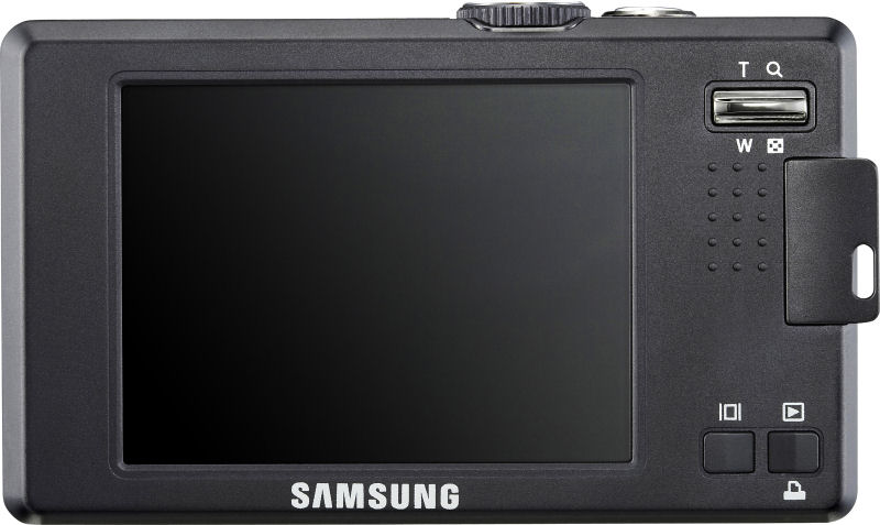 | | Image Preview / Review | | Viewfinder | No | | LCD | 3.0", 230,000 pixels | | Playback Zoom | 12.0x max | | Lens | | Lens Type | Samsung NV lens 3.6x optical zoom | | Image Stabilization | No | | Focal Length | 4.7 - 16.7mm (actual) 28 - 100mm (35mm equivalent) | | Aperture Range | f/2.8 (wide) / f/5.8 (tele) - ??? | | Focusing System | TTL multi / center / face priority | | Focusing Range | Normal: 33" - infinity (80 cm - infinity) Macro: 2.0" - 33" (5 cm - 80 cm) | | Exposure | | ISO Sensitivity | 80, 100, 200, 400, 800, 1600 | | Shutter Speed | 15 - 1/1000 second | | Exposure Modes | Program | | Metering Modes | Multi-pattern, center-weighted, spot | | Exposure Compensation | +/- 2.0EV in 1/3EV increments | | White Balance | Image Sensor - Auto, Daylight, Cloudy, Fluorescent_H, Fluorescent_L, Tungsten, Custom, Manual | | Internal Flash | Modes: Auto, Auto & Red-eye reduction, Fill-in flash, Slow sync, Flash off, Red eye fix Range: Wide : 0.2m - 5.0m, Tele : 0.3m - 2.4m | | Creative | | Scene Modes | Night, Portrait, Children, Landscape, Text, Close-up, Sunset, Dawn, Backlight, Fireworks, Beach & Snow, Self shot, Cafe, Food | | Digital Zoom | 1.0 - 5.0x | | Self Timer | Yes, 2 or 10 seconds | | Time Lapse | No | | Movie Format | AVI (MPEG-4) with audio 800x592 and 640x480 Max. frame-rate: 20 frames per second | | Storage | | Recording Medium | SD/MMC, Built-in, SDHC | | File System | Complies with Design Rule for Camera File System (DCF) | | File Format | JPEG (EXIF 2.2) | | Connectivity | | Video | Yes, NTSC / PAL switchable | | Computer | USB 2.0 Full (LOW) Speed | | Other | DC Input | | Power | | Battery Type | Lithium Ion rechargeable | | Battery Form Factor | Proprietary SLB-1137D | | Product Bundle | | Software | Digimax Master | | Flash Memory | 512.0MB | | Other | | Digital Print Order Format (DPOF) compliant | Yes | | PictBridge Compliant | Yes | | Internal Microphone | Yes | | Internal Speaker | Yes | | Tripod Mount | Ye s | | Remote Control | Yes | | More Photos |  | | |