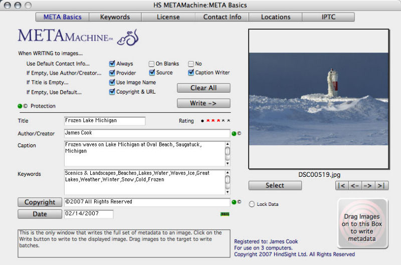 METAmachine has Copyright Protection options built in that prevent overwriting any existing copyright information in images. METAmachine is the only metadata writing software in full compliance with the Meta Manifesto of the Stock Artists Alliance.