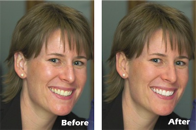 This patent pending technology identifies white areas surrounded by flesh tones such as teeth, and the white of the eyes, then automatically whitens, and brightens these areas. Since this plug-in makes teeth whiter, there may be some situations where the user will want to run it multiple times to handle difficult situations as its effects are cumulative. To optimize image correction on certain image areas, advanced Photoshop users can improve their productivity by using the Photoshop's History Brush tool to optimize correction on certain image areas.