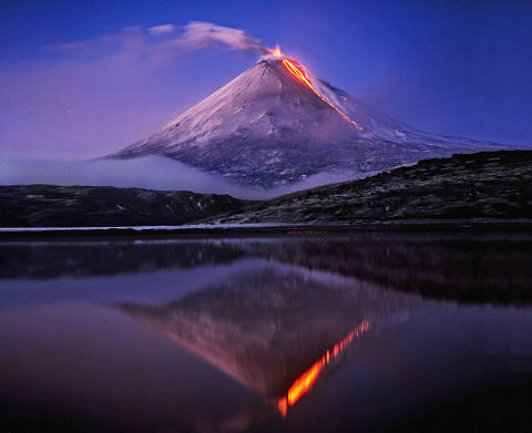 (Michael won a Canon PIXMA MP960 Printer.) The extraordinary nature of the subject itself lends much of the drama to this shot, but the perfect timing and exposure, balancing the light on the mountain against the glow of the lava made it more than just a photo of a volcano. Likewise, the choice of angle and setting, including the reflection in the foreground lake further elevates it from the mundane.