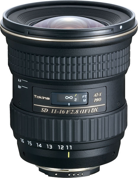 | Tokina AT-X 116 PRO DX 11~16mm F2.8 | | | Focal Length | 11 - 16 mm | | Maximum Aperture | F2.8 | | Minimum Aperture | F22 | | Lens Construction | 13 elements in 11 groups | | Coating | Multilayer coating | | Angle of View | 104 - 82° | | Minimum Focusing Distance | 0.3 m | | Maximum Magnification | 1:11.6 | | Focusing System | Internal Focusing | | Zoom System | Rotary Zoom | | Aperture Blades | 9 | | Filter Size | 77 mm | | Maximum Diameter | 84 mm | | Length | 89.2 mm | | Weight | 560 g | | Compatible Mount | Nikon digital / Canon digital | | . |