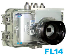 The FL-14 housing is ideal for outdoor and underwater photographers' needs. Underwater photographers can dive or snorkel and capture all the excitement of this fascinating world, while outdoor photographers also have the option of capturing the action of such activities as white water and paddle sports, sailing and boating, surfing, fishing, hunting, backpacking and camping. The FL-14 protects the Coolpix camera from water, sand, dust and other damaging elements.