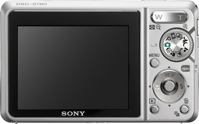 | | Image Preview / Review | | Viewfinder | No | | LCD | 2.5", 153,000 pixels | | Playback Zoom | 5.0x max | | Lens | | Lens Type | Sony lens, 6 elements in 6 groups including 3 aspherical elements 3x optical zoom | | Image Stabilization | No | | Focal Length | 5.8 - 17.4mm (actual) 35 - 105mm (35mm equivalent) | | Aperture Range | f/2.8 (wide) / f/4.8 (tele) - f/9.7 | | Focusing System | 5-point Contrast Detection Manual Focus possible (0) steps | | Focusing Range | Normal: 20" - infinity (50 cm - infinity) Macro: 2.0" - infinity (5.0 cm - infinity) | | Exposure | | ISO Sensitivity | Auto, 100, 200, 400, 800, 1250 | | Shutter Speed | 1 - 1/2000 second | | Exposure Modes | Program | | Metering Modes | Multi-pattern, Center-weighted, Spot | | Exposure Compensation | +/- 2.0EV in 1/3EV increments | | White Balance | Image Sensor - Auto, Daylight, Cloudy, Fluorescent, Incandescent, Flash WB | | Internal Flash | Modes: Auto, On, Slow Synch, Off Range: Auto ISO: Wide: 0.5 - 3.5m; Tele: 0.5 - 2.0m | | Creative | | Scene Modes | Twilight, Twilight Portrait, Soft Snap, Landscape, Beach, Snow, High Sensitivity | | Digital Zoom | 2x Precision, up to 14x Smart Zoom | | Self Timer | Yes, 10 or 2 seconds | | Movie Format | AVI (Motion JPEG) with audio | | Storage | | Recording Medium | Memory Stick Duo, Memory Stick PRO Duo, Built-in | | File System | FAT16, FAT32, complies with Design Rule for Camera File System (DCF) | | File Format | JPEG | | Connectivity | | Video | Yes, NTSC / PAL switchable | | Computer | USB 2.0 High Speed | | Other | Multi-jack, DC-Input | | Power | | Battery Type | Lithium-ion rechargeable | | Battery Form Factor | Proprietary NP-BK1 | | Product Bundle | | Software | Sony CD-ROM | | Battery / Charger | 1 x Proprietary NP-BK1 Lithium-ion rechargeable battery and charger | | Flash Memory | 22.0MB Internal | | Other | | Digital Print Order Format (DPOF) compliant | Yes | | PictBridge Compliant | Yes | | Internal Microphone | Yes | | Internal Speaker | Yes | | Tripod Mount | Yes | | Remote Control | No | | More Photos |  | | | | Sony Cyber-shot DSC-S780 |  | | General | | Camera Type | Ultra Compact | | Manufacturer | Sony | | Model Number | DSC-S780 | | Dimensions | 3.6 x 2.2 x 1.0" 90.8 x 56.0 x 26.5mm | | Weight | 128.0 g 4.5 oz | | Planned Price | $180.00 | | Planned Availability | 2008 | | Image Capture | | Sensor Type | 1/2.5" Sony Super HAD CCD 8.30 megapixels (total) 8.10 megapixels (effective) | | Filter Type | RGBG | | Aspect Ratio | 4:3, 3:2 | | Image Dimensions | 3264 x 2448 (8.0 megapixels) 3264 x 2176 (7.1 megapixels) 2592 x 1944 (5.0 megapixels) 2048 x 1536 (3.1 megapixels) 1920 x 1080 (2.1 megapixels) 640 x 380 (0.2 megapixels)