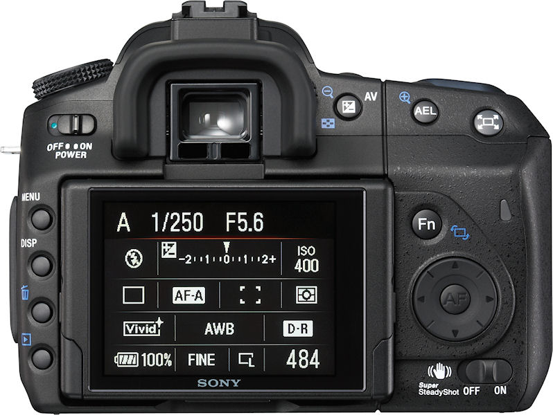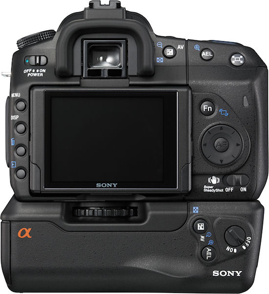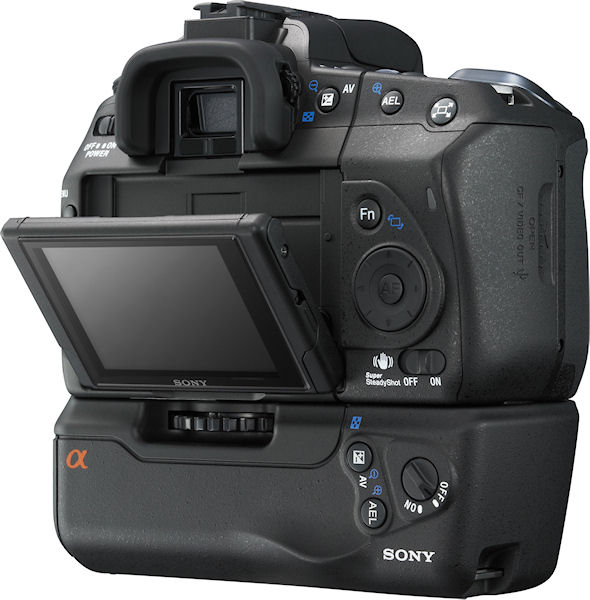 | | Capture Speed | Continuous: 2.0 frames per second for 9999 frames | | Image Quality | 3 levels | | Image Preview / Review | | Viewfinder | Yes, SLR type; eye-level pentamirror, 95% coverage, 0.74x magnification | | LCD | 2.7", 230,000 pixels | | Lens | | Lens Type | Interchangeable Lens Bundled lens has 3.9x optical zoom and 55mm lens thread | | Lens Mount | Sony Alpha (Minolta A) mount | | Image Stabilization | Yes | | Focal Length (bundled lens) | 18.0 - 70.0mm (actual) 27 - 105mm (35mm equivalent) | | Aperture Range (bundled lens) | f/3.5 - 22 (W), f/5.6 - 36 (T) | | Focusing System | 9-point, center cross TTL phase detection with eye-start and "Quick AF" for Live View with AF assist lamp Manual Focus possible (0) steps | | Focusing Range | Normal: 16" - infinity (38 cm - infinity) | | Exposure | | ISO Sensitivity | 100, 200, 400, 800, 1600, 3200 | | Shutter Speed | 30 - 1/4000 second | | Exposure Modes | Aperture, Shutter, Manual | | Metering Modes | 40-segment Honeycomb Pattern, Center-weighted, Spot; (1200 zone metering in Live View mode) | | Exposure Compensation | +/- 2.0EV in 1/3EV increments | | White Balance | Image Sensor - Auto, Daylight, Shade, Cloudy, Tungsten, Fluorescent, Flash, Color Temperature/Color Filter, Custom, Manual | | Internal Flash | Guide Number: 12 Modes: Built-in Auto Popup: Auto, Fill-flash, Rear flash sync, Slow Sync, High Speed, Sync, Wireless off camera flash (with Flash HVL-F56AM, F36AM) Range: Lens dependent | | Flash Exposure Compensation | +/- 3.0EV in 1/3EV increments | | Creative | | Scene Modes | Portrait, Landscape, Macro, Sports action, Sunset, Night portrait, No flash | | Digital Zoom | Up to 2x | | Self Timer | Yes, 2 or 10 seconds | | Storage | | Recording Medium | CompactFlash Type 1, CompactFlash Type 2, Microdrive | | File System | FAT16, FAT32, complies with Design Rule for Camera File System (DCF) | | File Format | CCD-RAW, RAW, RAW+JPEG; (.ARW), JPEG (EXIF 2.21) | | Connectivity | | Video | Yes, NTSC / PAL switchable | | Computer | USB 2.0 High Speed | | Other | DC Input, Wired Remote | | Power | | Battery Type | Lithium Ion rechargeable | | Battery Form Factor | Proprietary NP-FM500H | | Product Bundle | | Battery / Charger | 1 x Proprietary NP-FM500H Lithium Ion rechargeabl battery and charger | | Flash Memory | 0.0MB | | Other | | Digital Print Order Format (DPOF) compliant | Yes | | PictBridge Compliant | Yes | | Tripod Mount | Yes, Metal | | Remote Control | Yes, Wireless | | More Photos |  |  |  |  |  |  |  |  |  |  | | |