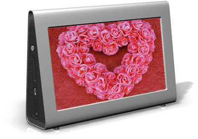 The new digital picture frame features an award-winning, sophisticated, unique wedge design unlike anything currently on the market. A beautiful addition to any environment, from an executive suite to a kitchen counter, this high-resolution digital LCD frame comes with 512-MB of memory to hold hundreds of digital pictures. It also can play movies and music via integrated speakers and comes with a mini USB port for connectivity to PCs and Macs.