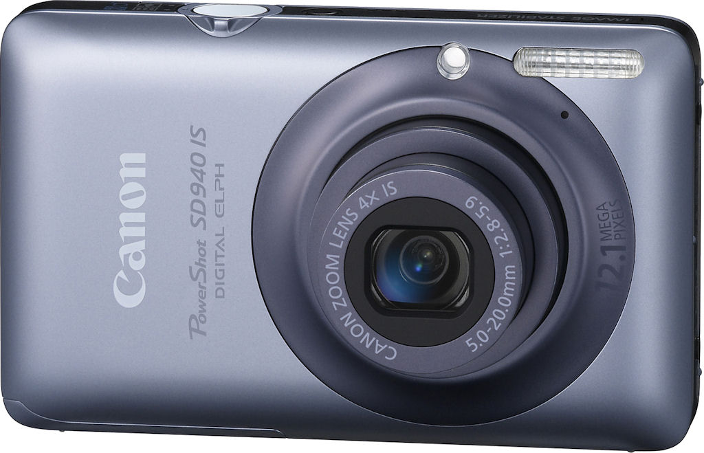 | | Capture Speed | Continuous: 0.8 frames per second | | Image Quality | 2 levels | | Image Preview / Review | | Viewfinder | No | | LCD | 3.0 in. diagonal 230,000 dots (approx. 77,000 pixels) | | Playback Zoom | 10.0x max | | Lens | | Lens Type | Canon Zoom Lens 5x optical zoom | | Image Stabilization | Yes | | Focal Length | 4.3 - 21.5mm (actual) 24 - 120mm (35mm equivalent) | | Aperture Range | f/2.8 (W) - f/5.9 (T) | | Focusing System | Contrast Detect AF with Face Detection Has AF assist lamp | | Focusing Range | Normal: 20" - infinity (50 cm - infinity) Macro: 2.0" - 20" (5 cm - 50 cm) | | Exposure | | ISO Sensitivity | Auto, 80, 100, 200, 400, 800, 1600, 3200* (*special scene mode) | | Shutter Speed | 15 - 1/3000 second | | Exposure Modes | Program | | Metering Modes | Evaluative, Center-weighted average, Spot (center), Face Detect AE | | Exposure Compensation | +/- 2.0EV in 1/3EV increments | | White Balance | Image Sensor - Auto, Daylight, Cloudy, Tungsten, Fluorescent, Fluorescent H, Custom | | Internal Flash | Modes: Auto, Red-eye Reduction, Auto Red-eye Correction, Flash On, Flash Off; FE lock, Slow Synchro Range: Auto ISO: 1.6 - 11 ft./50cm - 3.5m (W), 2.9 - 4.9ft./90cm - 1.5m (T) | | Creative | | Scene Modes | Portrait, Foliage, Snow, Beach, Sunset, Fireworks, Aquarium, Underwater, ISO 3200, Indoor, Kids & Pets, Night Snapshot), Color Accent, Color Swap, Digital Macro, Stitch Assist, Long Shutter, Creative Light Effects | | Digital Zoom | Up to 5x | | Self Timer | Yes, 2 or 10 seconds | | Movie Format | MOV (Image: H.264, Audio: PCM) with audio Max. clip length: 600 seconds () / 3,600 seconds () | | Storage | | Recording Medium | SD/MMC including SDHC | | File System | FAT16, FAT32, complies with Design Rule for Camera File System (DCF) | | File Format | JPEG (EXIF 2.2) | | Connectivity | | Video | High definition: Yes (HDMI) Standard definition: Yes, NTSC / PAL switchable | | Computer | USB 2.0 High Speed | | Power | | Battery Type | Lithium-ion rechargeable | | Battery Form Factor | Proprietary NB-6L | | Product Bundle | | Software | Canon Software Suite CD-ROM | | Battery / Charger | 1 x Proprietary NB-6L Lithium-ion rechargeable battery and charger | | Other | | Digital Print Order Format (DPOF) compliant | Yes | | PictBridge Compliant | Yes | | Internal Microphone | Yes | | Internal Speaker | Yes | | Tripod Mount | Yes | | Notes | Optical Image Stabilization, Touch Screen LCD, Smart Auto, Face, Blink and Motion Detection, Intelligent Contrast Correction, HD Movies, HDMI Output. Available in Silver, Blue, Purple and Gold. | | More Photos |  |  |  |  | | | Compared to the 980, the Canon PowerShot SD940 IS is a much more straightforward digital camera, said to be the slimmest wide-angle PowerShot to date. The Canon SD940 likewise has a sensor resolution of twelve megapixels from a 1/2.3" CCD image sensor. The PowerShot SD940 replaces the SD980's lens with a stabilized 4x optical zoom lens that offers a less generous range at both ends - a 28mm wide angle to a 112mm telephoto. The Canon PowerShot SD940's lens can focus as close as 1.2 inches (3 cm) in macro mode. The SD940's maximum aperture varies from f/2.8 to f/5.9 across the zoom range. The touch-screen is absent, replaced by a standard 2.7-inch LCD display. The Canon PowerShot SD940 IS doesn't offer manual or aperture / shutter priority modes, opting instead for a Program auto mode and a variety of scene modes. The Canon PowerShot SD940IS can capture 720p (1280 x 720 pixels) video clips with monaural sound, using H.264 MOV compression. The SD940 IS stores its images and video clips on SD or SDHC cards, and draws power from a proprietary NB-4L Lithiium Ion rechargeable battery. The Canon SD940 IS includes HDMI high-def and NTSC / PAL standard-def video output, and USB 2.0 High-Speed connectivity. The PowerShot SD940 IS will ship from September 2009. Pricing for the SD940IS has been set at $300. For more details, read our Canon SD940 preview. | Canon PowerShot SD940 IS |  | | General | | Camera Type | Ultra Compact | | Manufacturer | Canon | | Model Number | North America: SD940 IS International: Digital IXUS 120 IS | | Dimensions | 3.5 x 2.2 x 0.8 in. (90 x 55 x 20 mm) | | Weight | 4.2 oz (120 g) | | Planned Price | $300 | | Planned Availability | September 2009 | | Image Capture | | Sensor Type | CCD 1/2.3" (approx. 0.43 in. diagonal) 12.40 megapixels (total) 12.10 megapixels (effective) | | Filter Type | RGBG | | Aspect Ratio | 4:3, 16:9 | | Image Dimensions | 4000 x 3000 (12.0 megapixels) 4000 x 2248 (9.0 megapixels) 3264 x 2448 (8.0 megapixels) 2592 x 1944 (5.0 megapixels) 1600 x 1200 (1.9 megapixels) 640 x 480 (0.3 megapixels)
