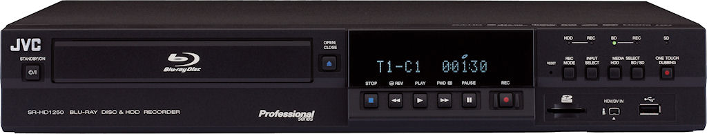 PASADENA, CA (September 23, 2009) – JVC Professional Products, division of JVC U.S.A., launched its new SR-HD1500 and SR-HD1250 Blu-ray disc and HDD recorders at DV EXPO Sept. 23-24 at the Pasadena Convention Center in Pasadena, Calif. These are the first standalone Blu-ray recorders in the United States, and feature a built-in hard disk drive for easy duplication and disc authoring without a PC.