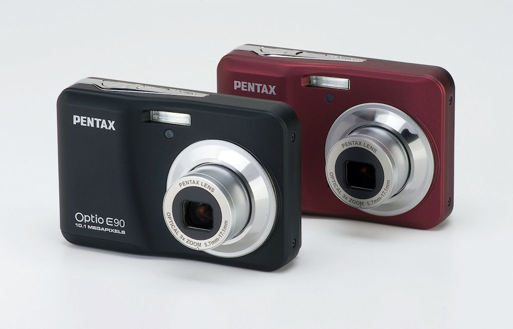 The entry-level Pentax Optio E90 is available in black or red bodies, for around US$100. Photo provided by Pentax Imaging Co. |