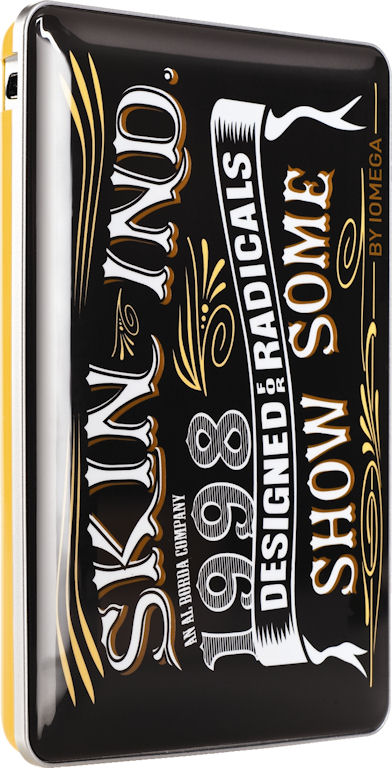In conjunction with the popular Skin Industries, one of the leading alternative "Sports Fashion" brands in America today, Iomega's new Skin Hard Drives feature three compact personal storage models with custom Skin-branded graphics that stand out in a burst of hip culture compared to anything else in the hard drive market today.