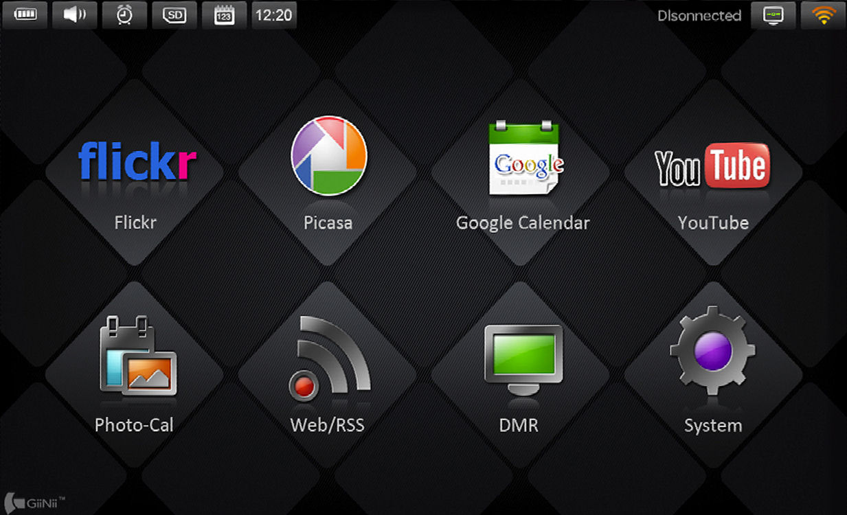 User interface of the GiiNii GW-ADWM Magic frame. Screenshot provided by GiiNii International. |