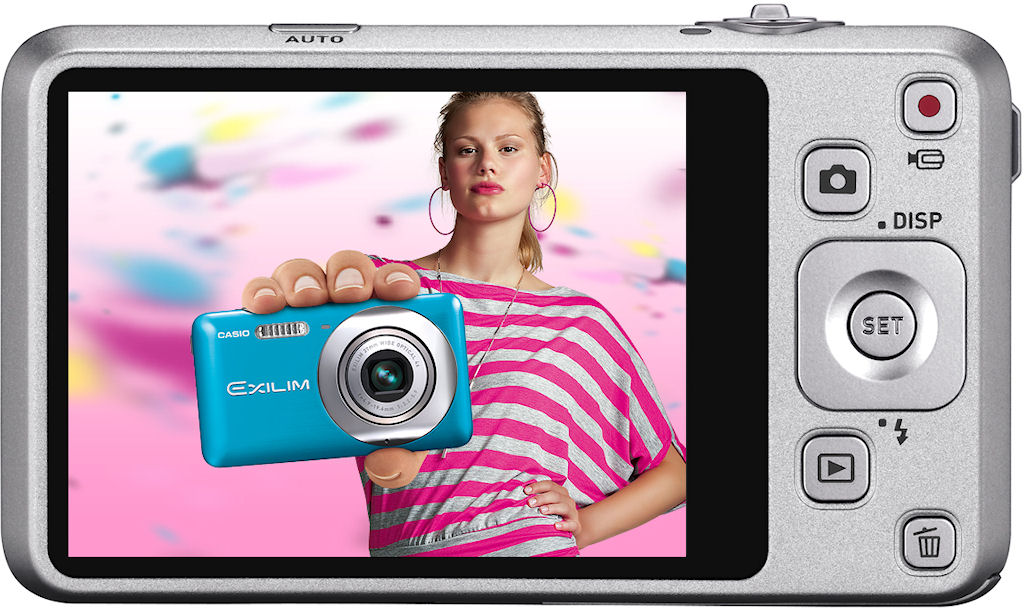 | | Image Preview / Review | | LCD | 2.7 in. diagonal 230,400 dots (76,800 pixels) | | Lens | | Lens Type | EXILIM; 6 elements in 5 groups, including aspherical element 4x optical zoom | | Image Stabilization | Yes | | Focal Length | 4.9 - 19.6mm (actual) 27 - 108mm (35mm equivalent) | | Aperture Range | f/3.2 - 8.0 (wide) / f/5.9 - ?? (tele) | | Focusing System | Contrast detect with face detection; Intelligent, Spot, Multi,Tracking Has AF assist lamp Manual focus possible | | Focusing Range | Normal: 8" - infinity (20 cm - infinity) Macro: 3.3" - 20" (8 cm - 50 cm) | | Exposure | | ISO Sensitivity | Auto, 50, 100, 200, 400, 800, 1600, 3200 | | Shutter Speed | 4 - 1/2000 second | | Exposure Modes | Program | | Metering Modes | Multi pattern, (center weighted for some BEST SHOT scenes | | Exposure Compensation | +/- 2.0EV in 1/3EV increments | | White Balance | Image Sensor - Auto, Daylight, Overcast, Shade, Day white FL, Daylight FL, Tungsten, Manual | | Internal Flash | Modes: Auto, Flash Off, Flash On, Soft Flash, Red Eye Reduction Range: Approx. 0.2 - 4.2 m (W), Approx. 0.4 - 2.4 m (T) | | Creative | | Scene Modes | 42 "Best Shot" scenes | | Digital Zoom | Up to 1.5x (SR Zoom mode) | | Self Timer | Yes, 2, 10, 3x seconds | | Movie Format | AVI (Motion JPEG, IMA-ADPCM) with audio | | Storage | | Recording Medium | SD/MMC including SDHC, Built-in | | File System | FAT16, FAT32, complies with Design Rule for Camera File System (DCF) | | File Format | JPEG (EXIF 2.3) | | Connectivity | | Computer | USB 2.0 High Speed | | Other | USB/AV Port | | Power | | Battery Type | Lithium-ion rechargeable | | Battery Form Factor | Proprietary NP-120 | | Product Bundle | | Software | Casio CD-ROM | | Battery / Charger | 1 x Proprietary NP-120 Lithium-ion rechargeable battery and charger | | Flash Memory | 34.9MB Internal | | Other | | Digital Print Order Format (DPOF) compliant | Yes | | Internal Microphone | Yes | | Internal Speaker | Yes | | Tripod Mount | Yes | | Notes | Mechanical CCD-shift Image Stabilizati n, Single Frame SR Quality, Single Frame SR Zoom, Premium Auto, YouTube Capture Mode, Dynamic Photo, Art Shot and Art Effect. Available in yellow, vivid pink, silver, blue, soft pink and black. | | More Photos |  |  |  |  |  | | |