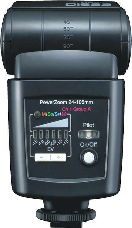 Front and rear views of the Nissin Di622 Mark II flash strobe. Photo provided by Nissin Japan Ltd. |