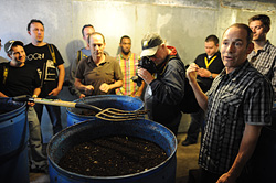 That afternoon we visited the El Pinto restaurant in Albuquerque, a true New Mexican restaurant, festooned with bundles of dried Anaheim chili peppers. (A quick review of their food: The Green chili enchiladas were an explosion of flavor, and I've never sampled a more honest guacamole outside my own home. Highly recommended.) After enjoying their cuisine, we were privileged to meet the owners of the restaurant and tour their adjacent salsa manufacturing and canning facility. John and Jim Thomas, the twin brothers who've taken over operation of the family business, emphasized the company's low-impact approach to manufacturing and farming the raw materials for their salsa and chili crop. From the factory hardware they've purchased second-hand and rebuilt to serve their purposes to their use of sustainable farming practices, the company prides itself on taking care of the environment and its employees while producing a quality product. They even showed us their composting operation, where select restaurant and factory scraps are processed into mulch for their chili farming operation.