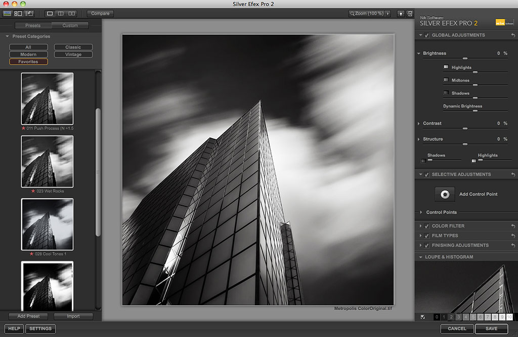 Ideal for any photographer passionate about black-and-white photography, Silver Efex Pro 2 features a wide variety of innovative enhancements to ensure the highest quality results. Silver Efex Pro includes unique features and functions, including specially designed algorithms for black-and-white photography, a unique all-in-one workflow, and the ability to fine-tune images with precise selective adjustments powered by U Point technology.