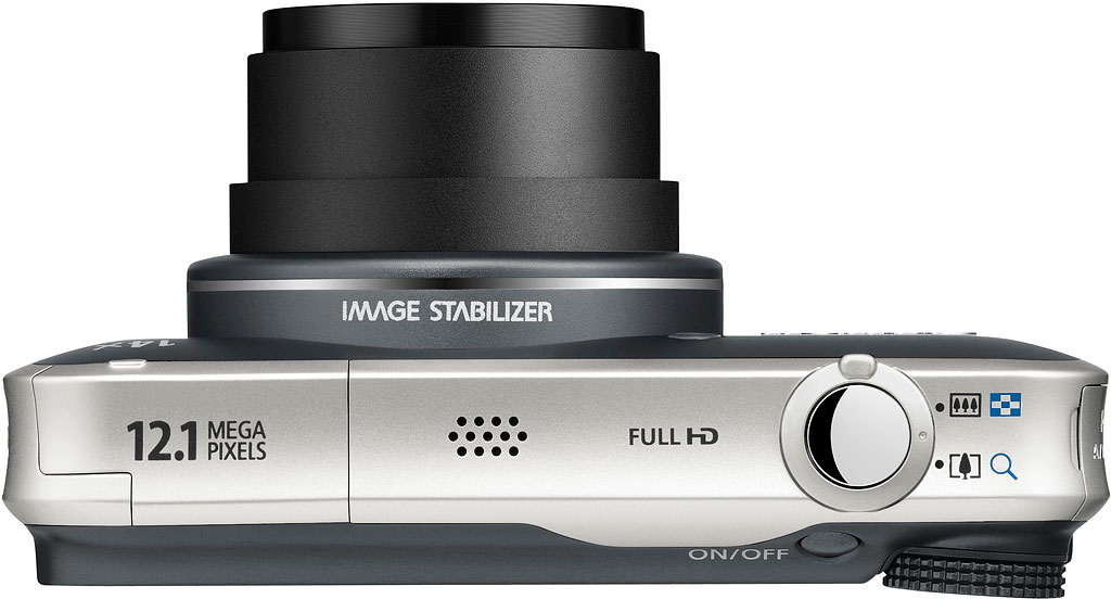 | | Capture Speed | Continuous: 3.2 frames per second | | Image Quality | 2 levels | | Image Preview / Review | | Viewfinder | No | | LCD | 3.0 in. diagonal 461,000 dots (approx. 154,000 pixels) | | Playback Zoom | 10.0x max | | Lens | | Lens Type | Canon Zoom Lens 14x optical zoom | | Image Stabilization | Yes | | Focal Length | 5.0 - 70.0mm (actual) 28 - 392mm (35mm equivalent) | | Aperture Range | f/3.1 (W) / f/5.9 (T) to f/8.0 | | Focusing System | Contrast Detect with Face Detection; Face Detection, 1-point AF (fixed to center) Has AF assist lamp Manual focus possible | | Focusing Range< td> | Normal: 2" - infinity (5 cm - infinity) Macro: 2.0" - 20" (5 cm - 50 cm) | | Exposure | | ISO Sensitivity | Auto, 100, 200, 400, 800, 1600, 3200 | | Shutter Speed | 15 - 1/3200 second | | Exposure Modes | Aperture, Shutter, Manual | | Metering Modes | Evaluative, Center-weighted, Spot (center), Face Detect AE | | Exposure Compensation | +/- 2.0EV in 1/3EV increments | | White Balance | Image Sensor - Auto, Day Light, Cloudy, Tungsten, Fluorescent, Fluorescent H, Underwater, Custom | | Internal Flash | Modes: Auto, Manual (3 levels), Red-eye Reduction, Auto Red-eye Correction, Flash On, Flash Off; FE Lock, Safety FE, Slow Synchro Range: Auto ISO: 2.5 - 11.5 ft. (W), 3.3 - 6.6 ft (T), 75cm - 3.5m (W), (1.0 - 2.0m, (T)) | | Creative | | Scene Modes | Movie Digest, Portrait, Landscape, Kids & Pets, SCN (Smart Shutter, High-speed Burst, Best Image Selection, Handheld Night Scene, Low Light, Beach, Underwater, Foliage, Snow, Fireworks, Stitch Assist), Creative Filter (Fish-eye Effect, Miniature Effect, Toy Camera Effect, Monochrome, Super Vivid, Poster Effect, Color Accent, Color Swap) | | Digital Zoom | Up to 4x | | Self Timer | Yes, 2, 10, Custom seconds | | Time Lapse | Yes | | Movie Format | MOV (Image: H.264; Audio: PCM) with audio | | Storage | | Recording Medium | SD/MMC including SDHC, SDXC | | File System | FAT16, FAT32, complies with Design Rule for Camera File System (DCF) | | File Format | JPEG (EXIF 2.3) | | Connectivity | | Video | High definition: Yes (HDMI) Standard definition: Yes, NTSC / PAL switchable | | Computer | USB 2.0 High Speed | | Other | Mini HDMI | | Power | | Battery Type | Lithium-ion rechargeable | | Battery Form Factor | Proprietary NB-5L | | Product Bundle | | Software | Canon software suite | | Battery / Charger | 1 x Proprietary NB-5L Lithium-ion rechargeable battery and charger | | Other | | Digital Print Order Format (DPOF) compliant | Yes | | PictBridge Compliant | Yes | | Internal Microphone | Yes | | Internal Speaker | Yes | | Tripod Mount | Yes | | Notes | Optical Image Stabilization, Canon HS system, Full 1080p HD movies, PASM exposure modes, HDMI output, Built-in GPS geo-tagging, Movie Digest. Available in black, blue and red. | | More Photos |  |  |  | | |