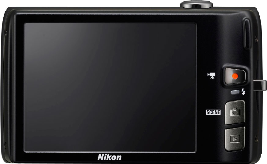 | | Image Preview / Review | | Viewfinder | No | | LCD | 3.0 in. diagonal 460,000 dots (approx. 153,000 pixels) | | Lens | | Lens Type | Zoom-Nikkor VR 5x optical zoom | | Focal Length | 4.6 - 23.0mm (actual) 26 - 130mm (35mm equivalent) | | Aperture Range | f/3.2 (wide) / f/6.5 (tele) - ?? | | Focusing System | Contrast Detection with Touch AF/AE, Face-Priority AF and Subject Tracking AF Has AF assist lamp | | Focusing Range | Normal: 20" - infinity (50 cm - infinity) Macro: 4.1" - 4,082" (10 cm - 10,000 cm) | | Exposure | | ISO Sensitivity | Auto (80 to 1600), Fixed range auto (ISO 80 to 400, 80 to 800); 80, 100, 200, 400, 800, 1600, 3200 | | Exposure Modes | Program | | Exposure Compensation | +/- 2.0EV in 0.3EV increments | | White Balance | Image Sensor | | Creative | | Scene Modes | 20 Scene modes. | | Digital Zoom | Up to 4x | | Self Timer | Yes, 10 or 2, Smile seconds | | Storage | | Recording Medium | SD/MMC including SDHC, SDXC, Built-in | | File System | FAT16, FAT32, complies with Design Rule for Camera File System (DCF) | | File Format | JPEG | | Connectivity | | Computer | USB 2.0 High Speed | | Power | | Battery Type | Lithium-ion rechargeable | | Battery Form Factor | Proprietary LP-E19 | | Product Bundle | | Software | Nikon ViewNX 2 CD-ROM | | Battery / Charger | 1 x Proprietary LP-E19 Lithium-ion rechargeable battery and charger | | Flash Memory | 20.0MB Internal | | Other | | Digital Print Order Format (DPOF) compliant | Yes | | Internal Microphone | Yes | | Internal Speaker | Yes | | Tripod Mount | Yes | | Notes | 4-way VR Image Stabilization, 3" Touchscreen LCD, 720p HD movies, Filter effects such as Soft Focus, Selective Color, Color Options, Fisheye, Miniature and Cross Screen; Smile Timer, Blink Warning, Red-eye Fix, Skin Softening. Available in black, silver, red and plum. | | More Photos |  | | |