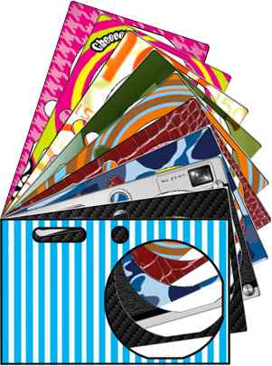 Immediately dress the camera in a choice of 10 skins with contemporary designs that ship with the product simply by adding a skin, replacing the faceplate panel, and snapping on the lens ring. -