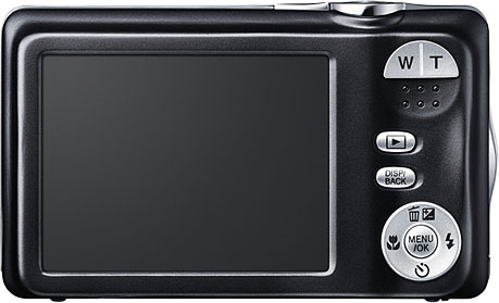 | | Capture Speed | Continuous: 1.1 frames per second for 3 frames | | Image Preview / Review | | Viewfinder | No | | LCD | 2.7 in. diagonal 230,000 dots (approx. 77,000 pixels) | | Lens | | Lens Type | Fujinon Zoom; 7 groups 8 lenses 5x optical zoom | | Image Stabilization | No | | Focal Length | 5.0 - 25.0mm (actual) 28 - 140mm (35mm equivalent) | | Aperture Range | f/2.6 - f/8 (W) / f/6.2 - f/20 (T), with ND filter | | Focusing System | Contrast Detection: Center, Tracking | | Focusing Range | Normal: 18" - infinity (45 cm - infinity) Macro: 4.1" - 33" (10 cm - 80 cm) | | Exposure | | ISO Sensitivity | Auto,100, 200, 400, 800, 1600, 3200* ISO 3200 is effective in S mode. | | Shutter Speed | 8 - 1/1800 second | | Exposure Modes | Program | | Metering Modes | TTL 256-zone metering | | Exposure Compensation | +/- 2.0EV in 1/3EV increments | | White Balance | Image Sensor - Auto, Fine, Shade, Incandescent light, Fluorescent light 1(Daylight), Fluorescent light 2(Warm White), Fluorescent light 3(Cool White) | | Internal Flash | Modes: Face detection OFF: Auto, Forced Flash, Suppressed Flash, Slow Synchro; Face detection ON: Red-eye Reduction Auto, Red-eye Reduction & Forced Flash, Suppressed Flash, Red-eye Reduction & Slow Synchro Range: Auto ISO: Wide: Approx. 45cm - 3.0 m / 1.4 ft. - 9.8 ft.; Telephoto: Approx. 80 cm - 2.0 m / 2.6 ft. - 6.6 ft. | | Creative | | Scene Modes | Natural Light & with Flash, Natural Light, Portrait, Baby, Smile & Shoot, Landscape, Motion Panorama, Sport, Night, Night (Tripod), Fireworks, Sunset, Snow, Beach, Party, Flower, Text | | Digital Zoom | Up to 7.2x | | Self Timer | Yes, 2, 10 seconds | | Movie Format | AVI (Motion JPEG) with audio | | Storage | | Recording Medium | SD/MMC including SDHC, Built-in | | File System | Complies with Design Rule for Camera File System (DCF) | | File Format | JPEG (EXIF 2.3) | | Connectivity | | Video | Standard definition: Yes, NTSC / PAL switchable | | Computer | USB 2.0 High Speed | | Power | | Battery Type | Lithium-ion rechargeable | | Battery Form Factor | Proprietary NP-45A/B | | Product Bundle | | Battery / Charger | 1 x Proprietary NP-45A/B Lithium-ion rechargeable battery and charger | | Other | | Digital Print Order Format (DPOF) compliant | Yes | | PictBridge Compliant | Yes | | Internal Microphone | Yes | | Internal Speaker | Yes | | Tripod Mount | Yes | | Remote Control | No | | Notes | 720p HD Movies, Smile / Blink Detection, 6 Scene Recognition Auto (SR AUTO), Smile & Shoot Mode, Facebook and YouTube Easy Web Upload, PhotoBook Assist, Face Detection and Automatic Red-eye Removal, i-Flash, Tracking AF, Motion Panorama. Available in black, silver and pink. | | More Photos |  |  |  | | |