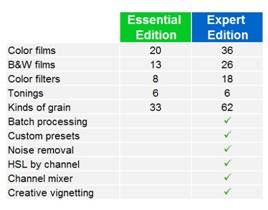 Compatible with Mac and Windows, DxO FilmPack 3 is available in two editions, Essential and Expert, which differ in terms of available film renderings and features.